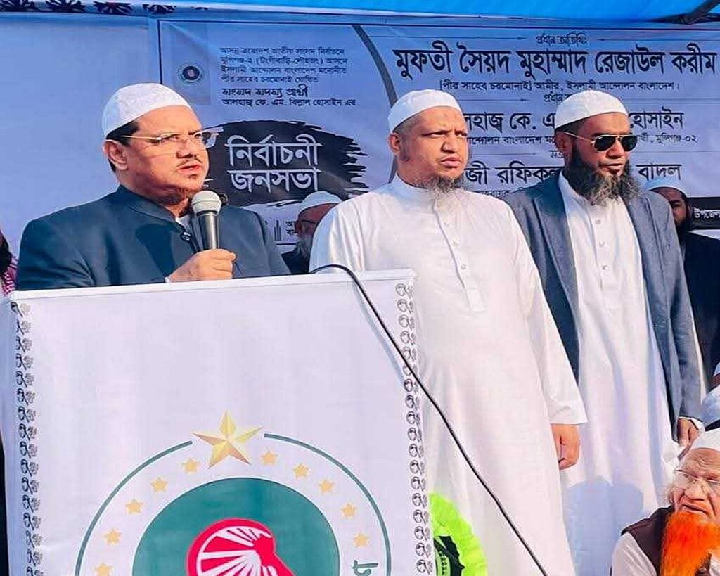 মুন্সীগঞ্জের টঙ্গীবাড়ী উপজেলায় আয়োজিত এক বিশাল নির্বাচনি জনসভায় অংশ নিয়ে রাজনৈতিক প্রতিপক্ষ ও সাবেক মিত্রদের কঠোর সমালোচনা করেছেন ইসলামী আন্দোলন বাংলাদেশের আমির মুফতি সৈয়দ মুহাম্মদ রেজাউল করিম (চরমোনাই পীর)। শনিবার (২৪ জানুয়ারি ২০২৬) বিকেলে উপজেলার সোনারং আমতলি মাদ্রাসা মাঠে মুন্সীগঞ্জ-২ আসনের দলীয় প্রার্থী কে এম বিল্লাল হোসাইনের সমর্থনে এই জনসভার আয়োজন করা হয়। প্রধান অতিথির বক্তব্যে তিনি বলেন যে, চব্বিশের ঐতিহাসিক জুলাই অভ্যুত্থানের পর দেশের রাজনীতিতে এক শ্রেণির ক্ষমতালোভী গোষ্ঠী এককভাবে রাষ্ট্রক্ষমতা দখলের অপকৌশলে লিপ্ত হয়েছে। তিনি অভিযোগ করেন, যখন তাঁরা দেশের কল্যাণে সরল মনে রাজনৈতিক পথে চলছিলেন, ঠিক তখনই একটি পক্ষ ষড়যন্ত্রের জাল বিস্তার করে তাঁদের পথরোধ করার চেষ্টা করেছে। ইসলামের দোহাই দিয়ে রাজনীতি করলেও এই গোষ্ঠীটি আসলে পবিত্র শরীয়াহ আইন অনুযায়ী দেশ পরিচালনায় আন্তরিক নয় বলে তিনি দাবি করেন।