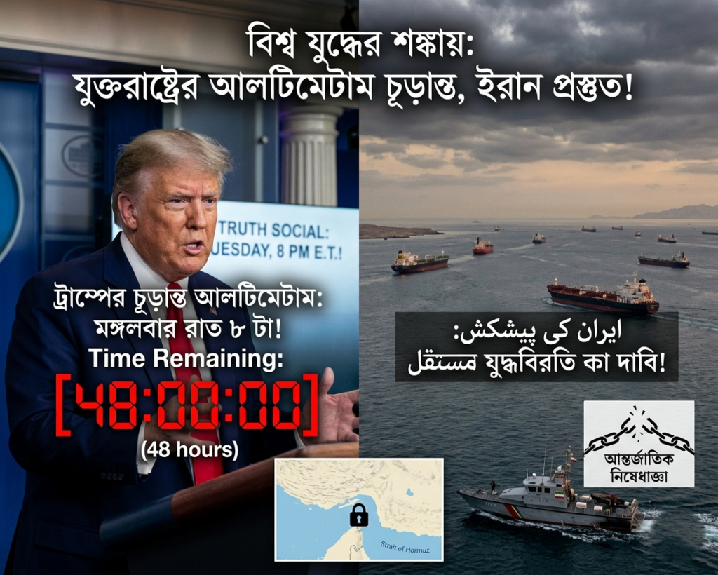 মার্কিন প্রেসিডেন্ট ডোনাল্ড ট্রাম্প ইরানকে দেওয়া আলটিমেটামকে ‘চূড়ান্ত’ হিসেবে ঘোষণা করেছেন। মঙ্গলবার রাত ৮টার (বাংলাদেশ সময় বুধবার সকাল ৬টা) মধ্যে […]